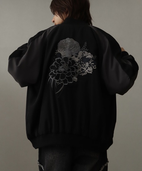 オリジナルでデザインした紫陽花の刺繍(Hydrangea)を背中と左胸に施し、モードな印象で従来のスカジャンの印象を一新した一着が登場。