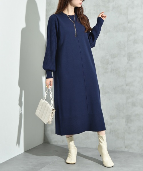女性らしいショルダーラインで、ボディのラインをカバーしてくれるストンとしたシルエットのニットワンピース。さりげなくセンターのアウトリンキングラインと袖をリブ編みにし縦のラインを強調しすっきり見えに◎シンプルなデザインの中にも大人な雰囲気が漂うおススメなワンピースです。またブーツにも合わせやすい着丈も人気のポイントです。大き目なネックレスやチェックのストールをプラスして華やかにするのも◎