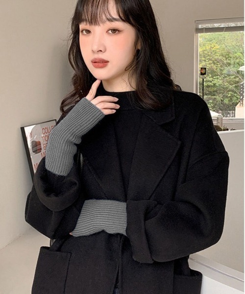 リブ ニット ショート アームウォーマー #