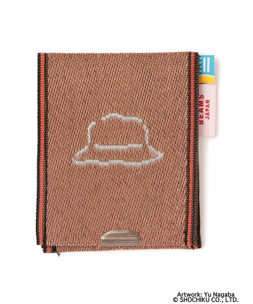 アイコン「ピケ帽」刺繍の小物入れ岡山の畳縁専門メーカー〈高田織物(タカダオリモノ)〉で製作した小物入れ。小津作品のタイトルバックに使われたベージュ色を再現し、表面には小津監督のトレードマークとも言えるピケ帽子を刺繍で配置、中を開くと「小津安二郎」の文字が表れます。畳縁で使われる生地は耐久性に優れ、適度な滑りもあるため交通系ICカードやポイントカード、コインケース入れなどに重宝します。日本の住文化の中心を担ってきた畳を使ったユニークなアイテムです。