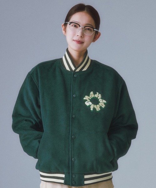 『mahagrid/マハグリッド』から、THROW UP VARSITY JACKET/サークルロゴデザイン スタジャンの入荷です。【mahagrid】