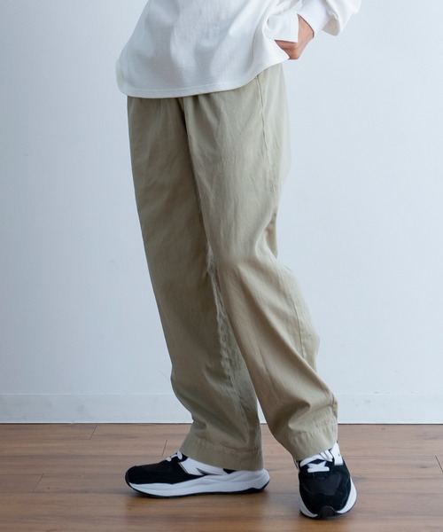 タックなしのクラシカルなゆったりとしたストレートシルエットでどのようなコーディネートにも
