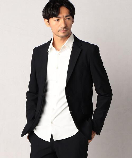 ストレッチ性のある素材を活かした、タイトなシングルブレスト