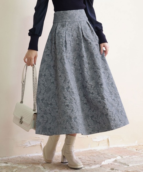 立体的なフクレジャガードの地模様が上品なフレアスカートです。