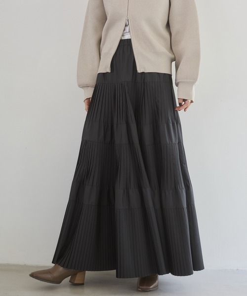 ウエストから段々と広がる、生地をたっぷりと使用した贅沢なプリーツスカート■商品ポイント