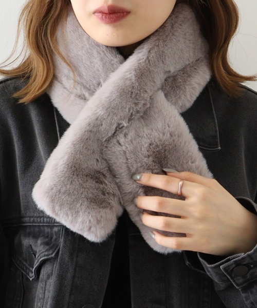 ネックウォーマー スヌード PAGE ONE 差し込みフェイクファーミニティペット レディース