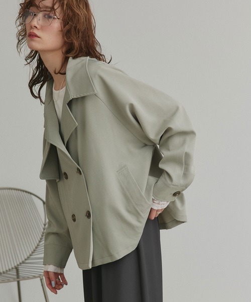 説明文ショート丈のトレンチなのでパンツ合わせはもちろんスカートコーデともバランスがとりやすい◎