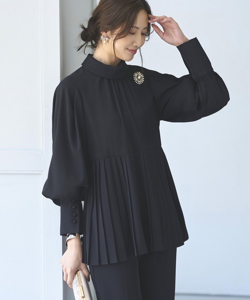 プリーツやカフスが印象的なAラインシルエットのトップス。