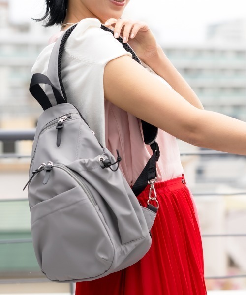 ・バッグのサイドにはボトル用ギャザーポケット付き。