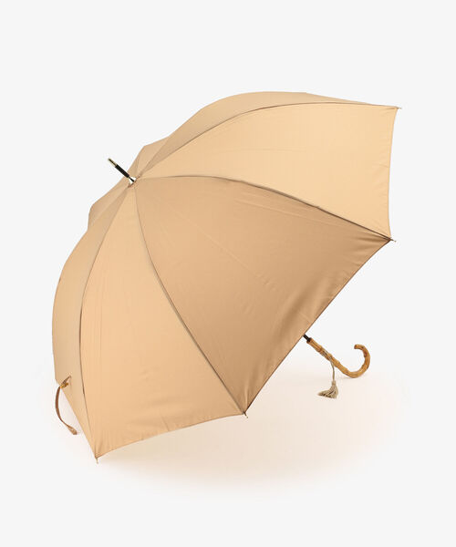 ハンドルにはナチュラルなバンブー素材を採用し、傘生地と同系色のタッセルでアクセントを加えました。スチール製に比べて軽いグラスファイバーの骨を使用しており、長時間持っていても腕が疲れにくいがうれしいところ。また、アルミ製に比べて風に強く壊れにくいので、風の強い雨の日でも安心してお使いいただけます。