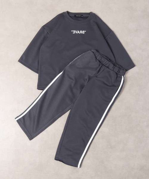 さらっとした素材のBIGロンTと、ライン入りワイドパンツのアンサンブル。