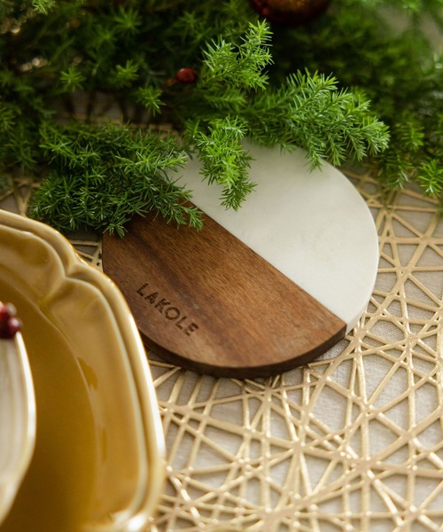 ウッドと大理石を合わせた、バイカラーデザインのコースター。