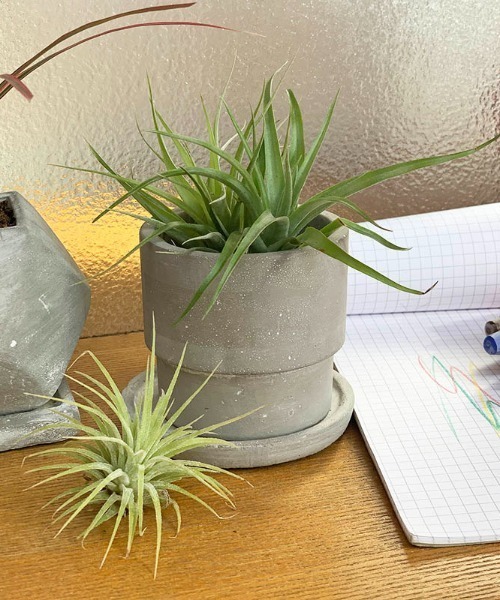 セメント特有の力強さ・清潔感・素材感が魅力の小振りなプランターシリーズ。 そこを住まいとした植物は、いつも以上に逞しく、モダンな雰囲気を醸し出します。 表面の風合いやクラック等、一つ一つ異なる仕上がりも個性として楽しめます。 形違いで揃えても良し、同型で統一感を出しても良し、お好みのスタイルでお使いいただけます。 シンプルなセメント素材はインテリアに馴染みやすく、植物との相性も抜群のポットです。