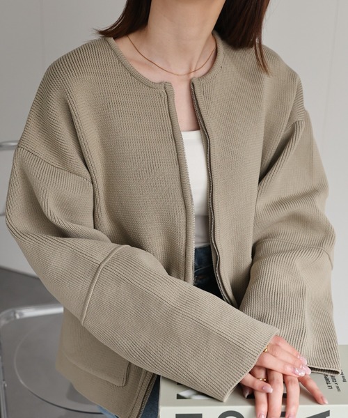 カーディガン感覚で羽織れるデザインながら、ブルゾンのような存在感のある一着です。