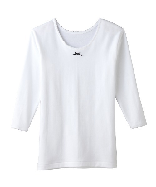 9分袖でしっかりあったか。ワンポイントに可愛いリボンをつけました。洗い替えに嬉しい2枚組。