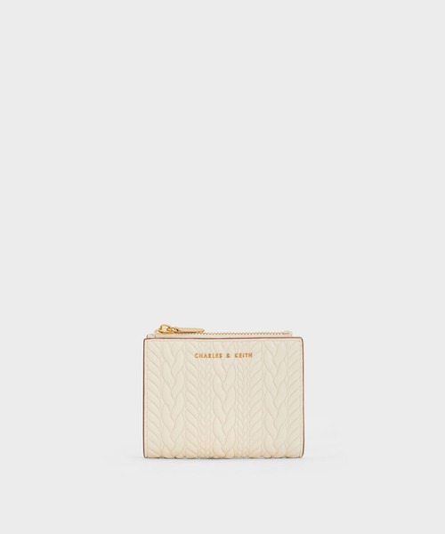 ニットの編み込み風デザインが新鮮な、シーズンらしい二つ折りウォレット。