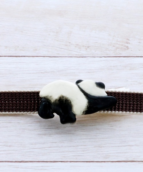 パンダ:おしりを向けて伸びをしているようなポーズのパンダ。オフホワイトの体に黒のポイント。