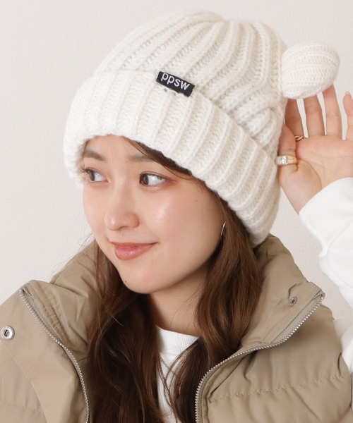 まるでぬいぐるみのようなアニマル耳がキュートなニットキャップ。