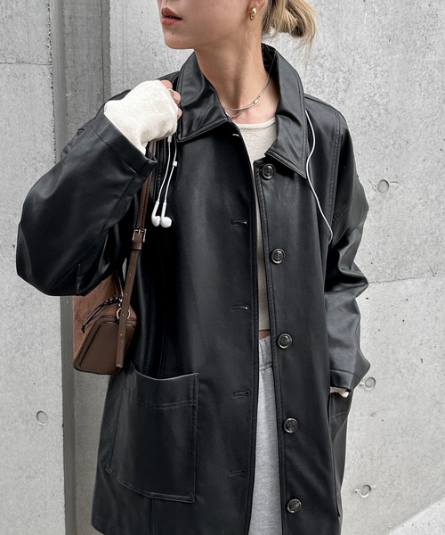・今季注目アウターのカバーオールをフェイクレザーで大人っぽい雰囲気に◎