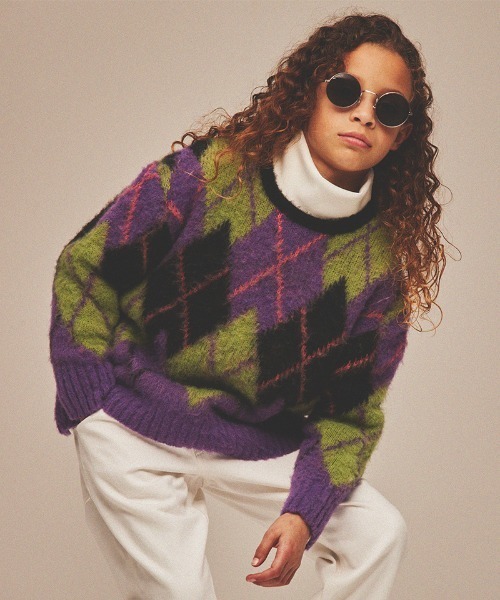 =============================モヘアニットのような毛足のある秋冬にぴったりなアーガイル柄セーターです。