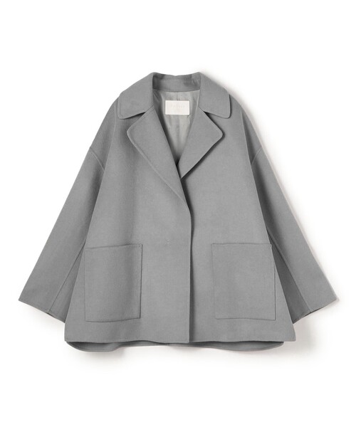 ショートコートはトレンド感のあるオープンカラーに、サイドスリットでポンチョライクな抜け感をプラスした一着。