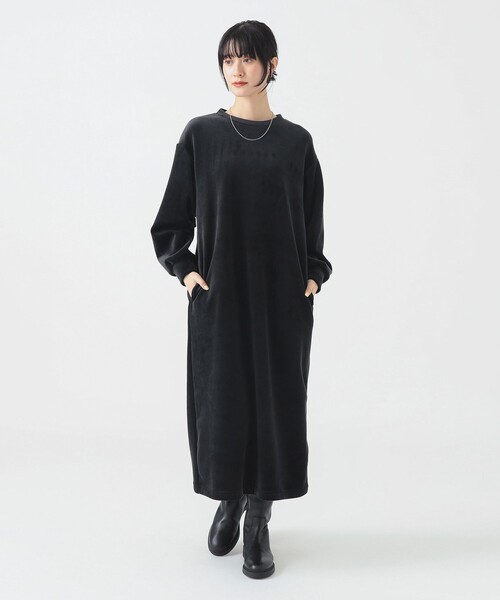 袖にタックを施し、トレンド感のあるカーブ袖に仕上げたワンピース。細うねの表面や、絞りのある袖口でさりげなくメリハリをもたらしてくれるひと品です。