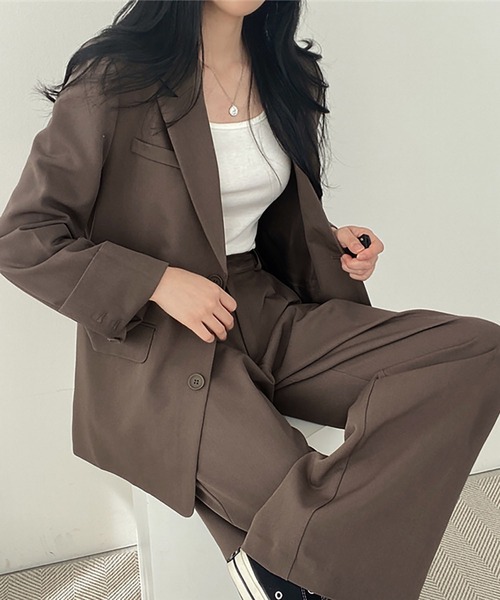 オフィスカジュアルでも◎幅広いシーンで活躍してくれるセットアップ。きちんと感ある2つボタンシングルジャケットとタック入りでリラックス感のあるワイドパンツがセットで登場。