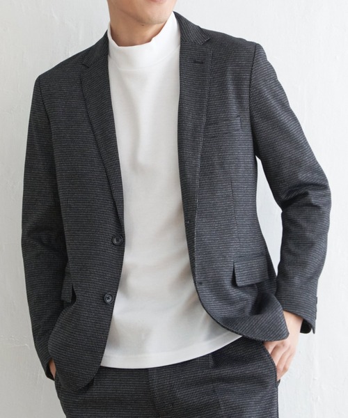 ””一見すると無地に見える生地ですが、さり気ない千鳥柄で仕立てたテーラードジャケット。