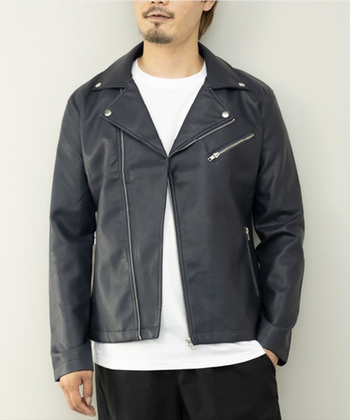 ほどよい光沢感が魅力のPUレザーライダースジャケット。羽織るだけでクールに決まる一着。