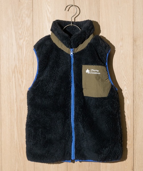胸元に、異素材の切り替えポケットを配置することで、旬のファンクショナルアウターに。さらに、首元のカラーと連動させることで統一感溢れるスタリングになること間違いなしです。ジップ部分は、それぞれアクセントカラーを使用することで、ファンクショナルアウターの格好良さに加えて、キッズの子供らしい可愛い部分も持ち合わせたおすすめな1枚。腕周りと裾は、パイピングデザインを採用することで、コーデのアクセント+リブがきゅっと閉まることで、秋冬の冷たい風をシャットアウトしてくれるのも嬉しいポイントの一つです。シルエットは、どんなコーデにも合わせやすいレギュラーシルエット。肌さわり抜群なボアアウターは、秋冬マストアイテムです。カラーは全部で3色展開。ベーシックなブラックやネイビーに加えて、秋冬の暗くなりがちなコーデのアクセントカラーにもおすすめなブラウンもご用意しています。