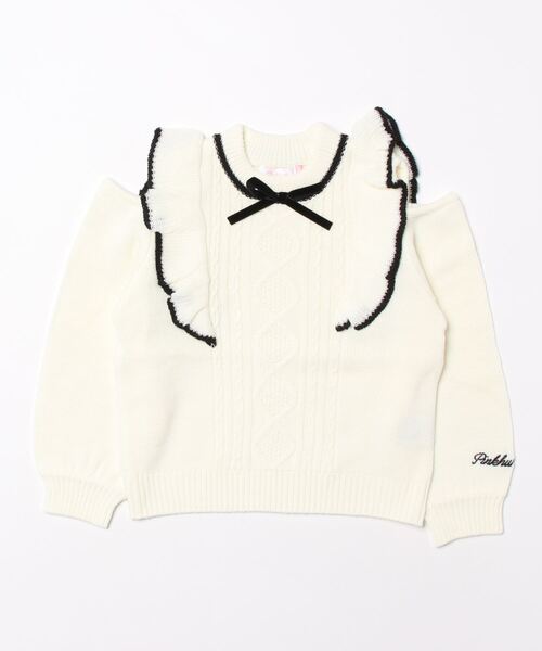 大きなフリルと肩開きデザインがガーリーなニット♪