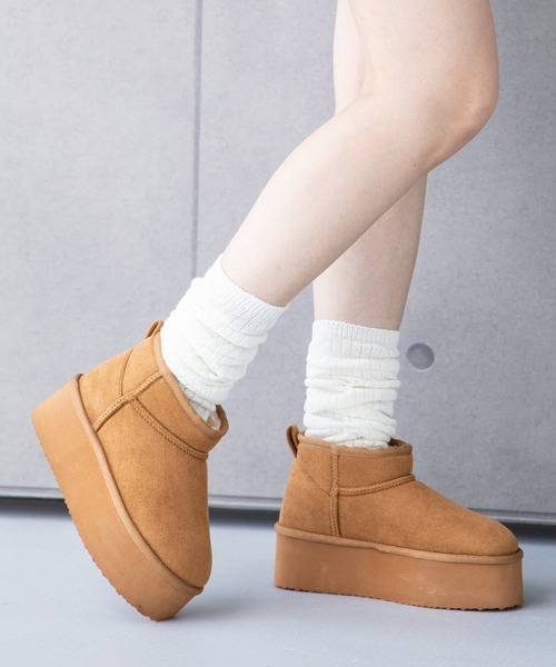 厚底でスタイルアップ効果抜群のムートンブーツ。