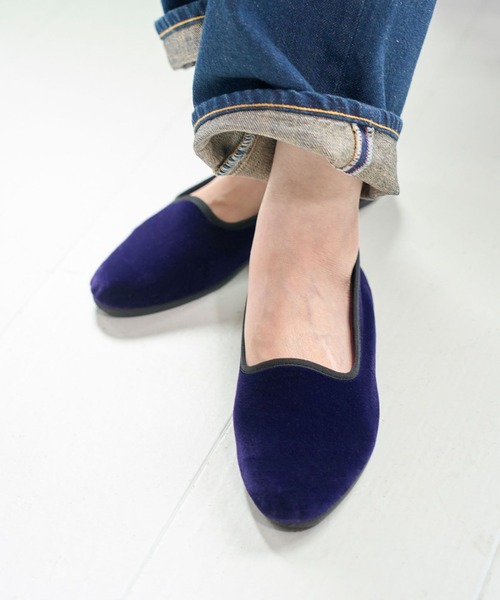 シーズンムードを高めるベロアのフラットシューズ