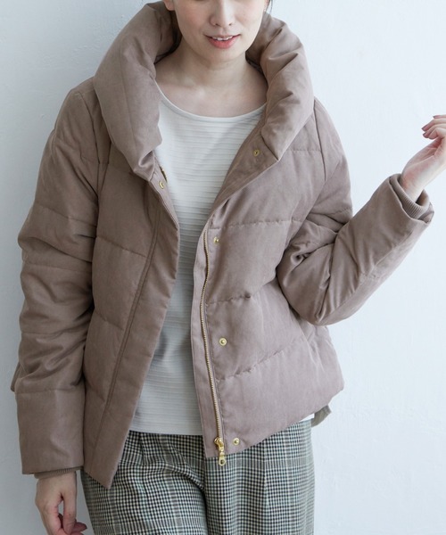 【デザイン】襟元にボリュームがあるショート丈ダウン。