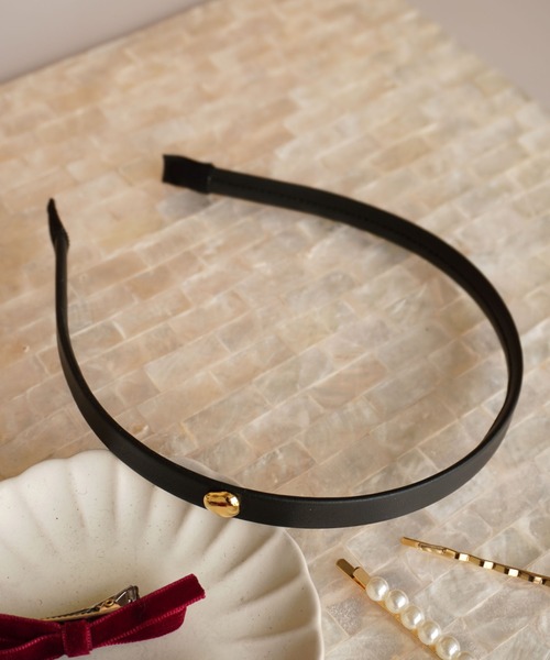 シンプルなレザーにワンポイントのゴールドの装飾がかわいいカチューシャ