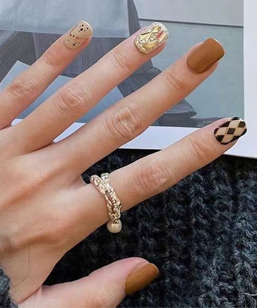 ネイルチップ ネイル ハンド 3D ラインストーン リボン バタフライ 十字架 韓国 韓国ファッション