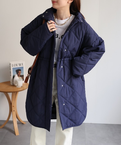 ゆったりシルエット×ダイヤキルトで、体型を拾わずすっきり見え◎