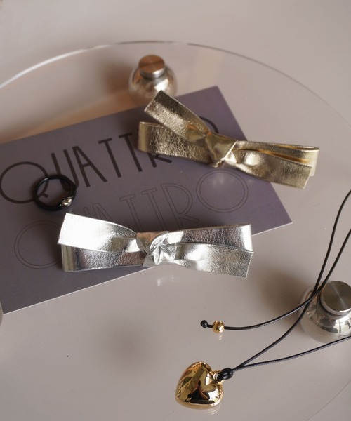 【 ammy. / エイミードット 】 メタリック シンプル リボン ヘアクリップ