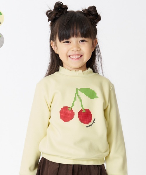 クロスステッチ風のチェリーのプリントが可愛い暖かトレーナー、スウェット。