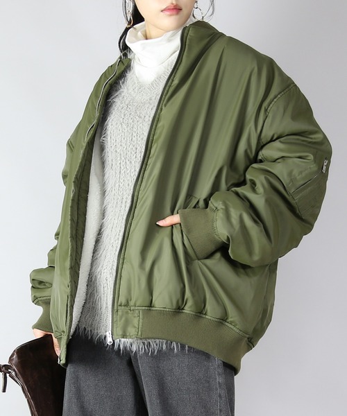 ゆったりとしたオーバーサイズとミリタリーな雰囲気が大人可愛いMA-1。