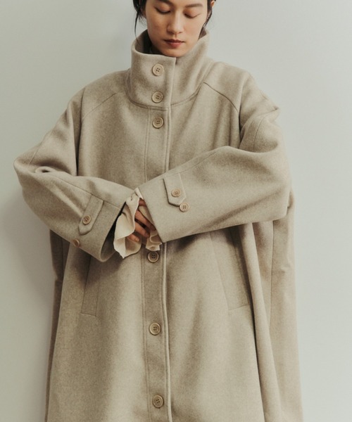 首回りから足元まですっぽりと覆う、生地を贅沢に使ったボリュームシルエット