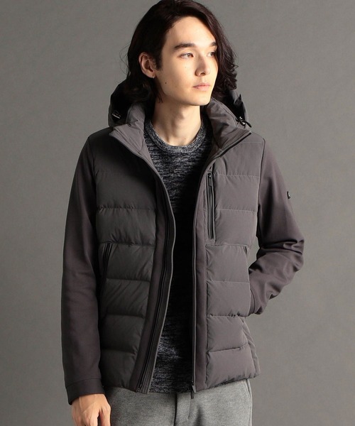 取外し可能なフーデッド仕様のダウンブルゾン。