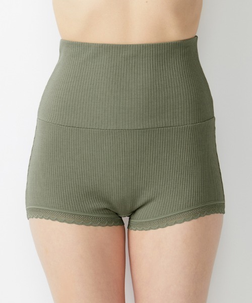 お腹をすっぽり覆ってくれる、腹巻付きタイプのボトム。