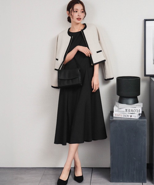 膝下丈で上品な着こなしに仕上がり、結婚式・卒入学式・セレモニーなどのフォーマルイベントにもぴったり。