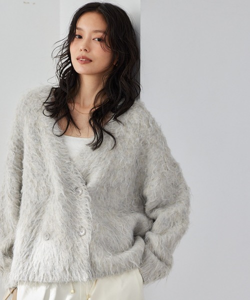 ・毎年好評のたっぷりとした分量のニットファーカーディガン。