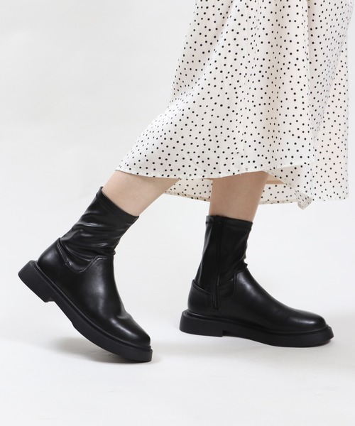 ソール部分を一回り大きめにしてクールな印象を取り入れながら、足首部分まである少し長めの丈感に、トゥの部分はラウンド型を採用した女性らしいデザインで、大人っぽくキレイ魅せしてくれます。