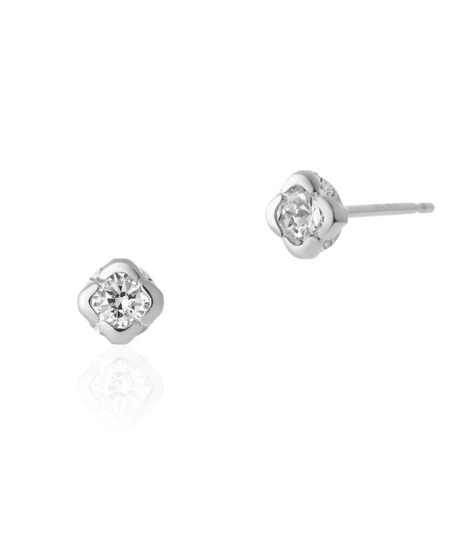 一粒のキュービックジルコニアが輝くホワイトゴールドのピアス。