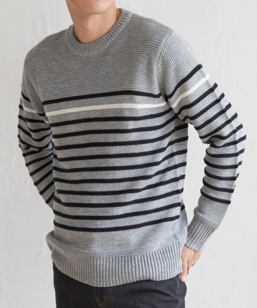 定番でもあるボーダーニットは、編地変化と 1本だけ配色にしたボーダー柄が特徴。