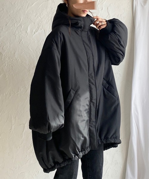 ◆たっぷりボリュームのオーバーシルエットが可愛い、スタンドカラー中綿モンスターコート◆