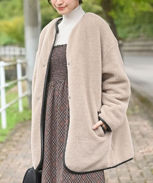 コーデが広がるリバーシブルジャケットコートもこもこ可愛いボアと大人っぽいキルティングの2パターンが楽しめるアウター。